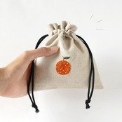 リネンの手刺繍巾着ポーチ*オレンジ